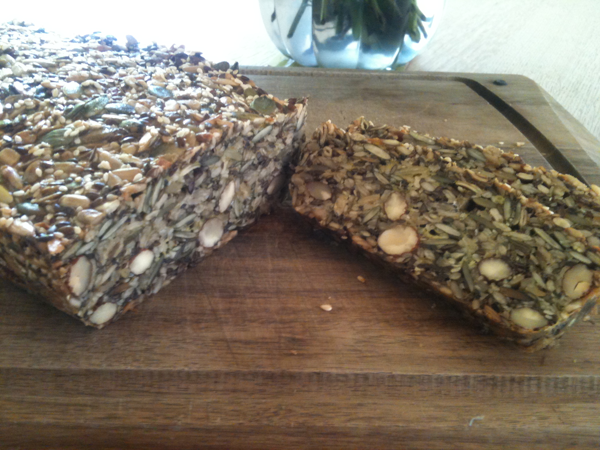 Rør alle ingredienserne sammen i en skål og hæld dem i en rugbrødsform foret med bagepapir. Bag brødet ved 160 grader i ca. 1 time. Tag brødet ud og lad det hvile i ca. 10 minutter, inden det tages ud af formen. Lad brødet køle af på ovnristen.