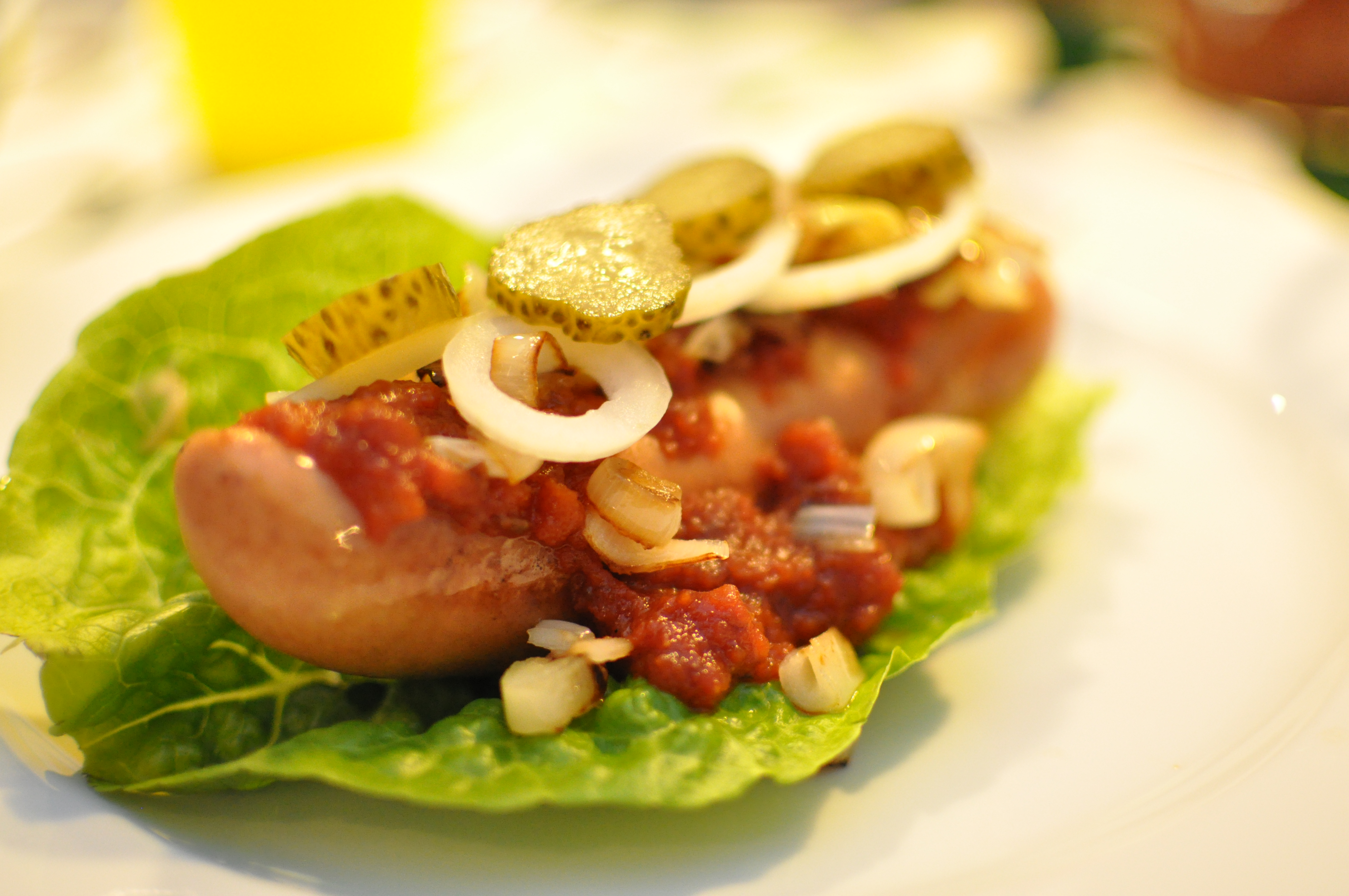 Igår fik vi mine grønne bønnefritter med en low carb hotdog med hjemmelavet ketchup – MUMS! 🙂