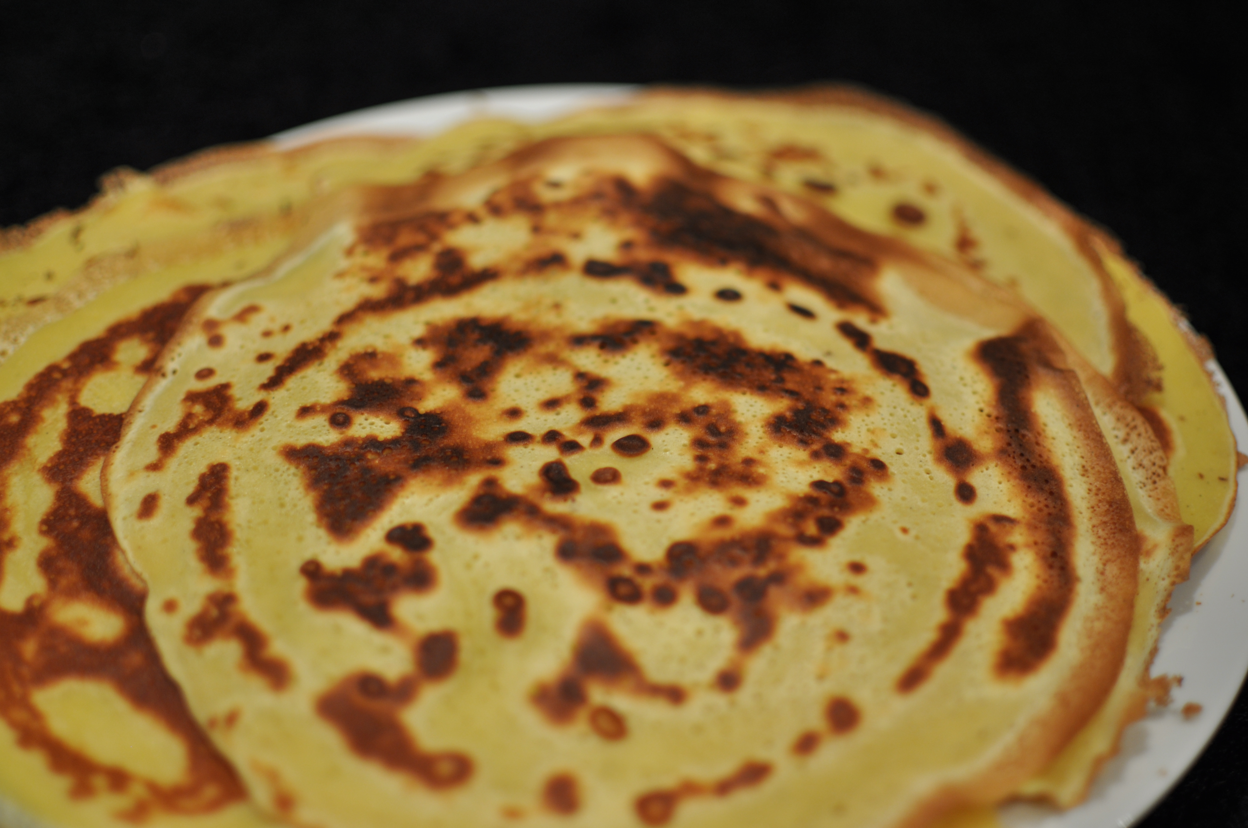Pandekagerne blev lavet en uge i forvejen og frosset ned. De var aller bedst helt friske og nystegte, hvor vi fik en hver med is og chokoladesovs, men versionen med hjemmelavet jordbærmarmelade til brunch var også super lækker.