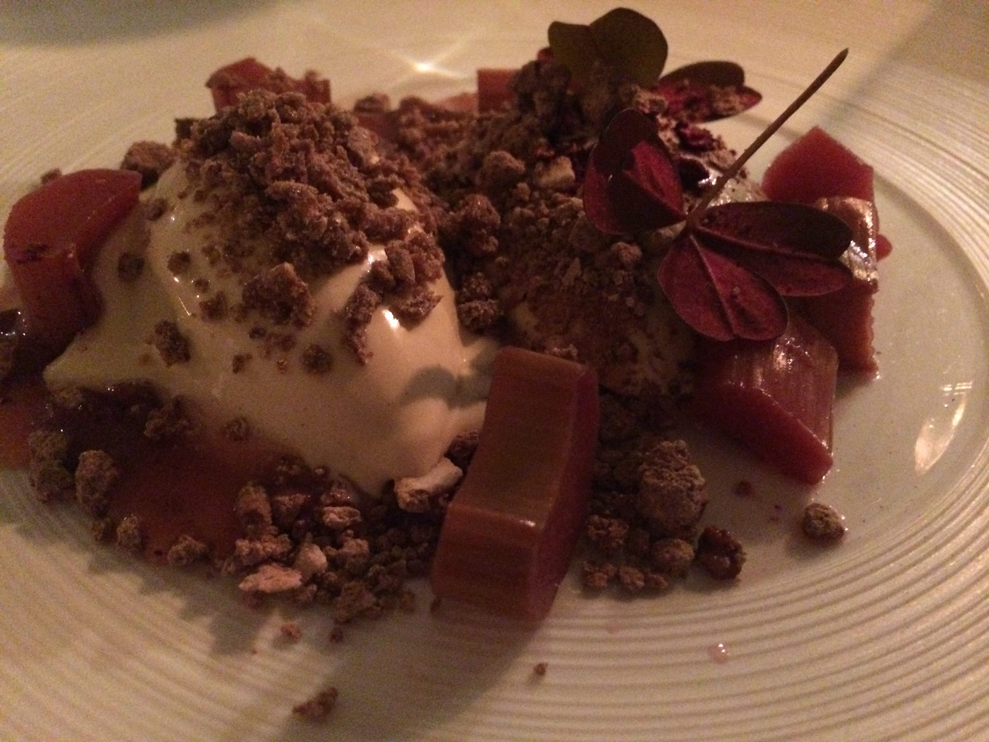 Syltede rabarber med ymerfromage, brun farin og iscreme