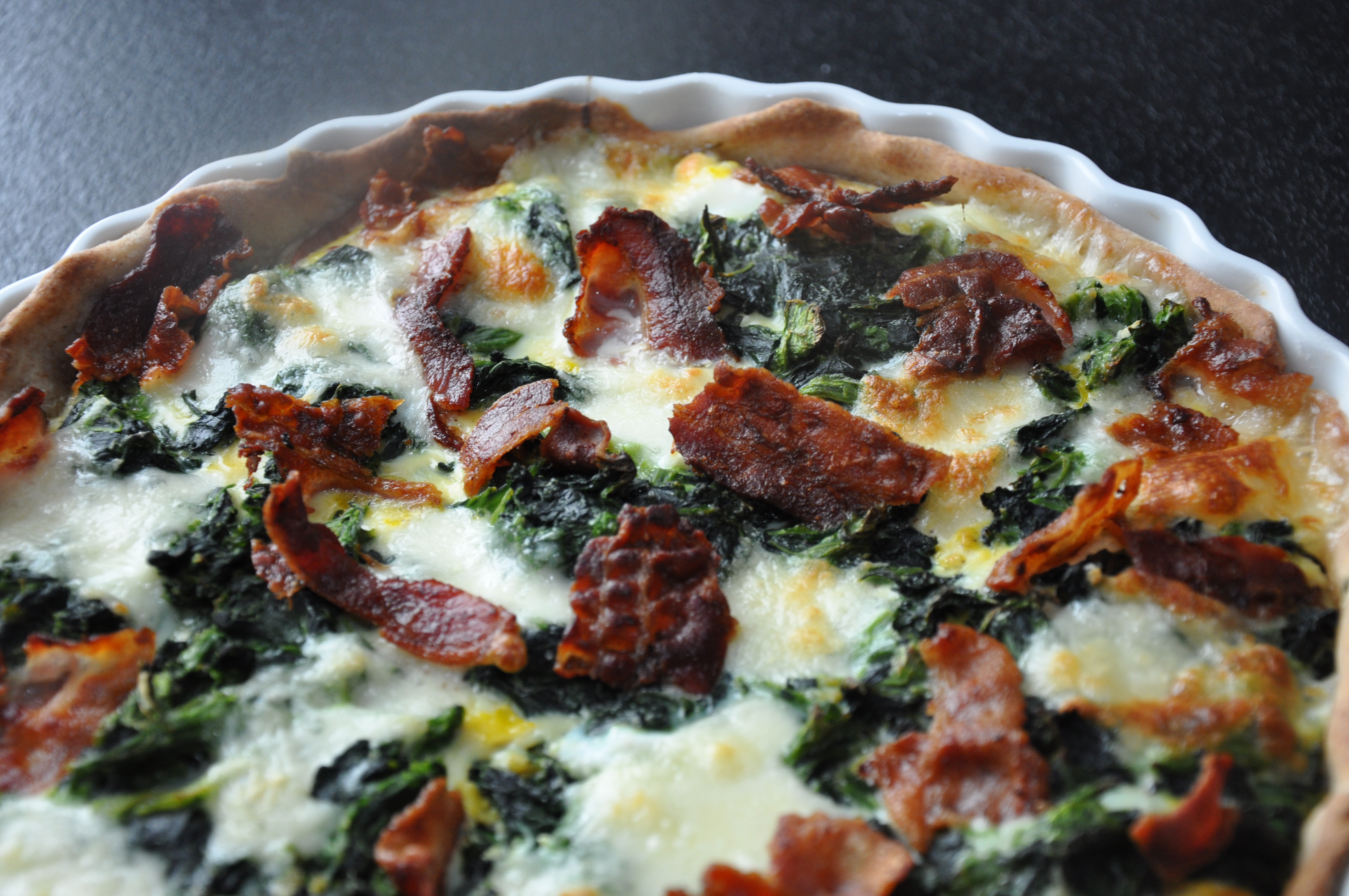 Det er alt for længe siden der sidst er blevet lavet en tærte hjemme hos mig. Men igår blev rugmels bunden rørt sammen og har ligget natten over i køleskabet og til aften blev den forvandlet til en lækker og (næsten) sund tærte.