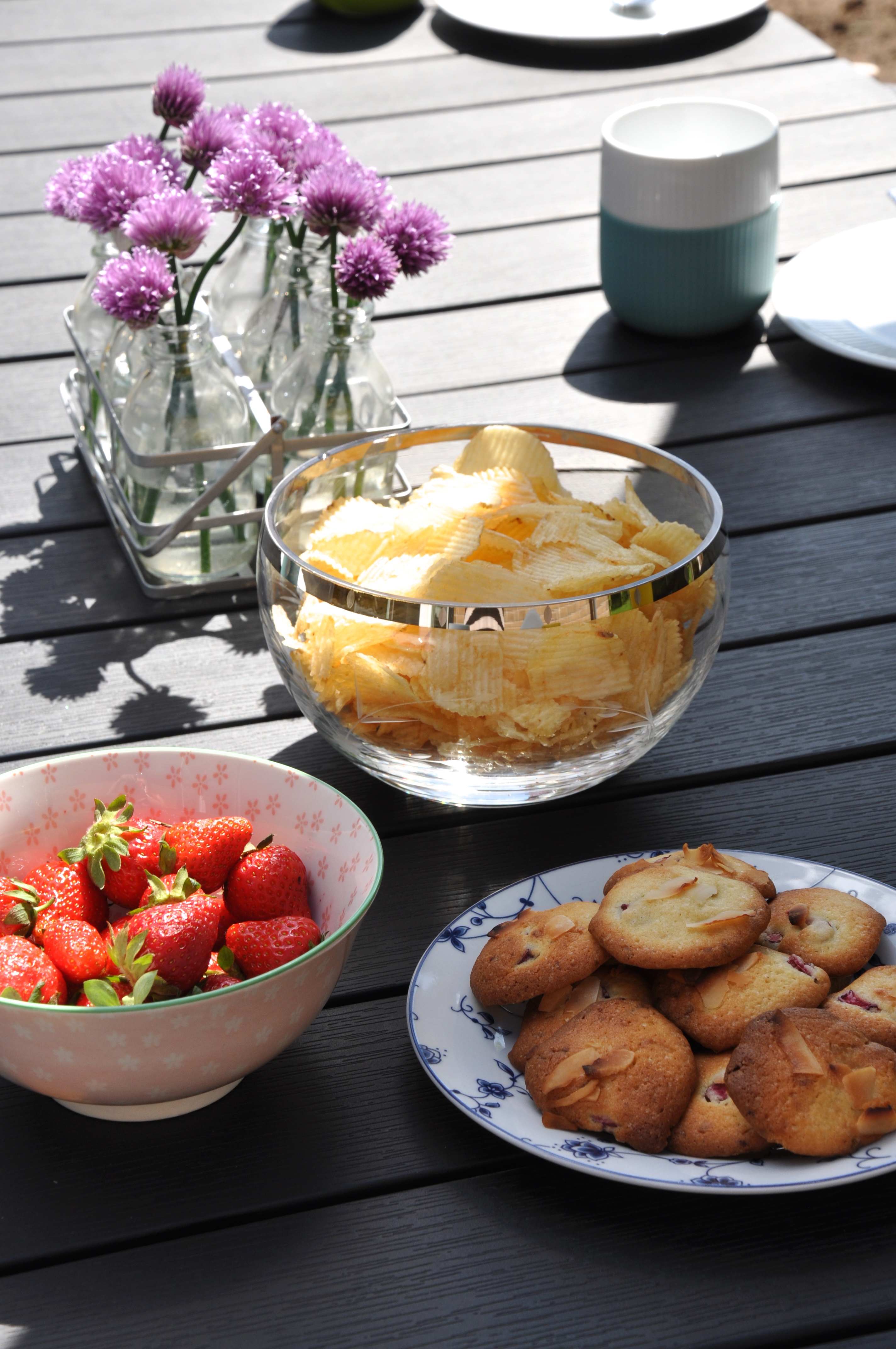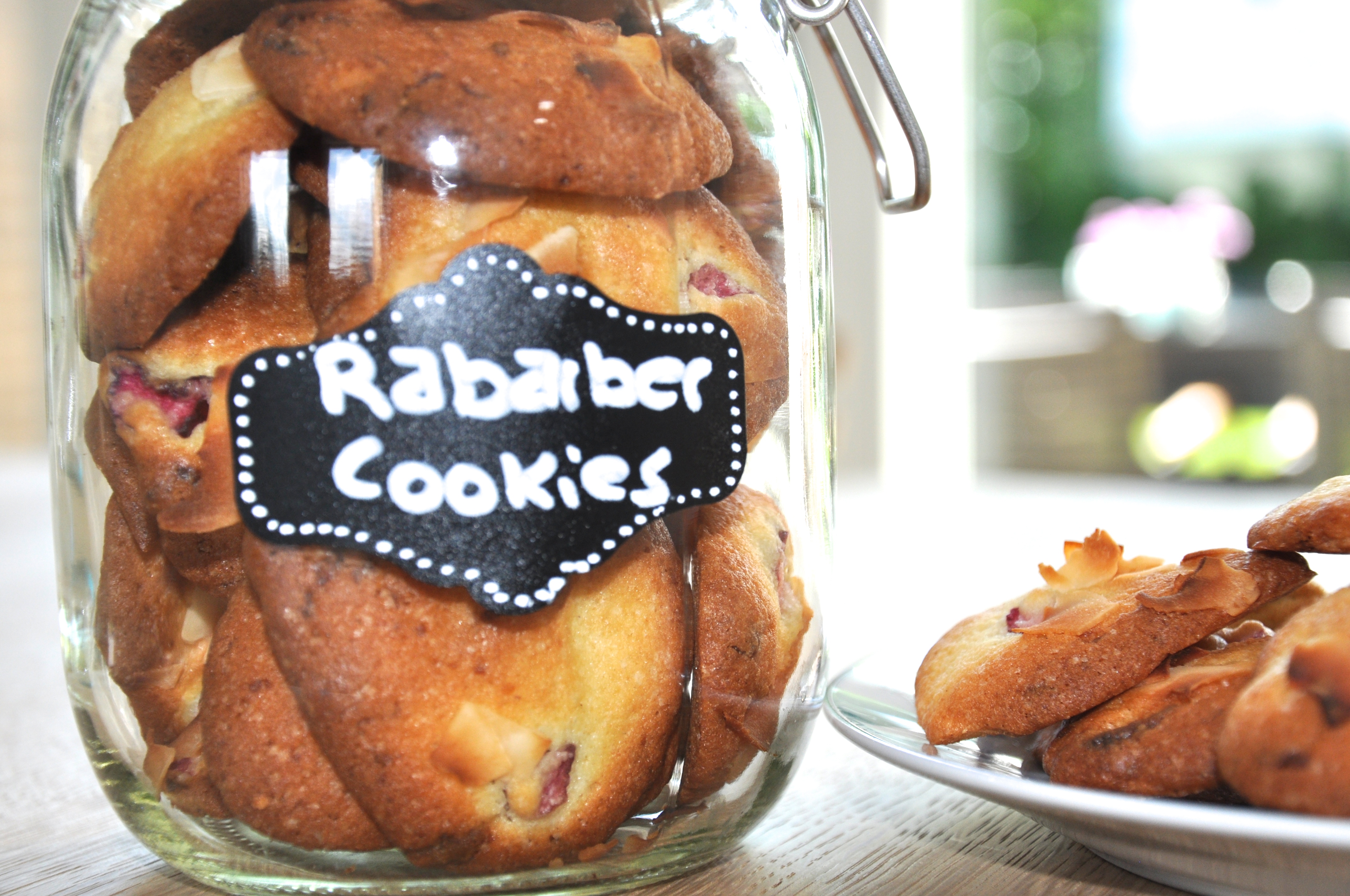 Mens min egen køkkenhave er ved at tage form med højbede hvor de første spire er ved at titte op og snart to jordbede klar til tilplantning er det godt man kan nyde af andres. Min svigermor efterlod en håndfuld rabarber først på ugen som jeg endnu ikke havde fået brugt, så jeg spekulerede lidt i at kaste mig ud i noget helt nyt med rabarber. Inspireret af en opskrift jeg så på twin food fik jeg til formiddag lavet de her lynhurtige cookies til vores gæster idag.