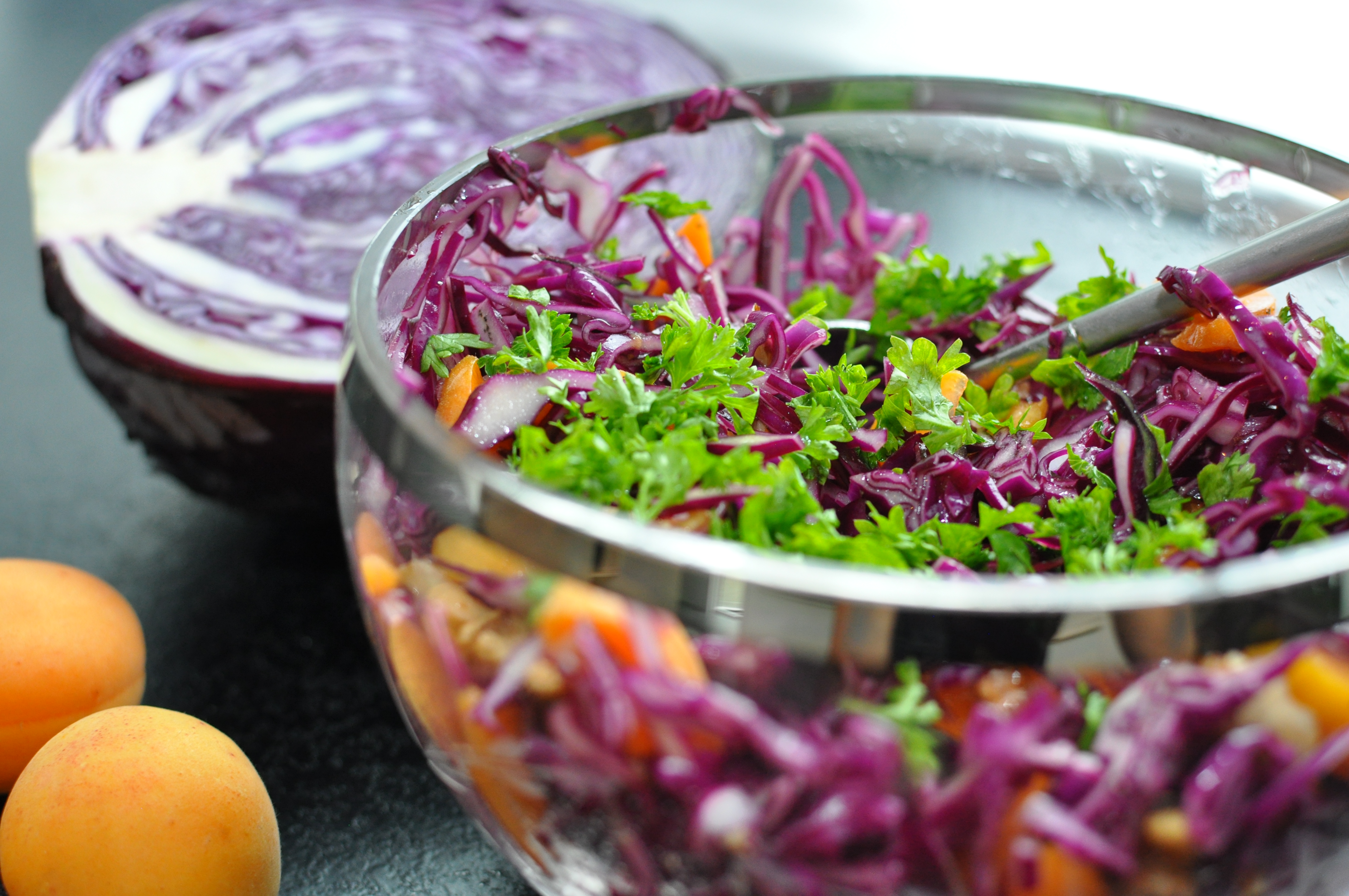 Rødkålssalat med friske abrikoserTil denne salat skal du bruge: