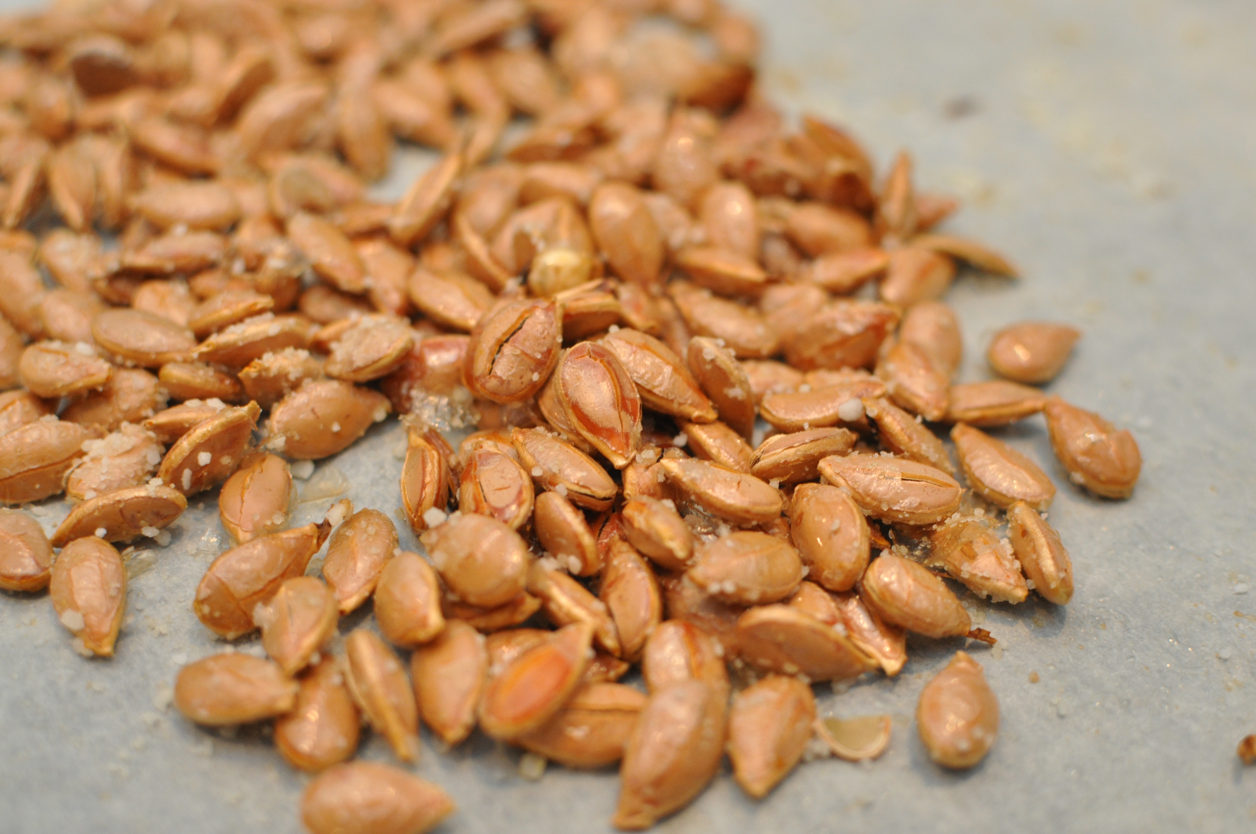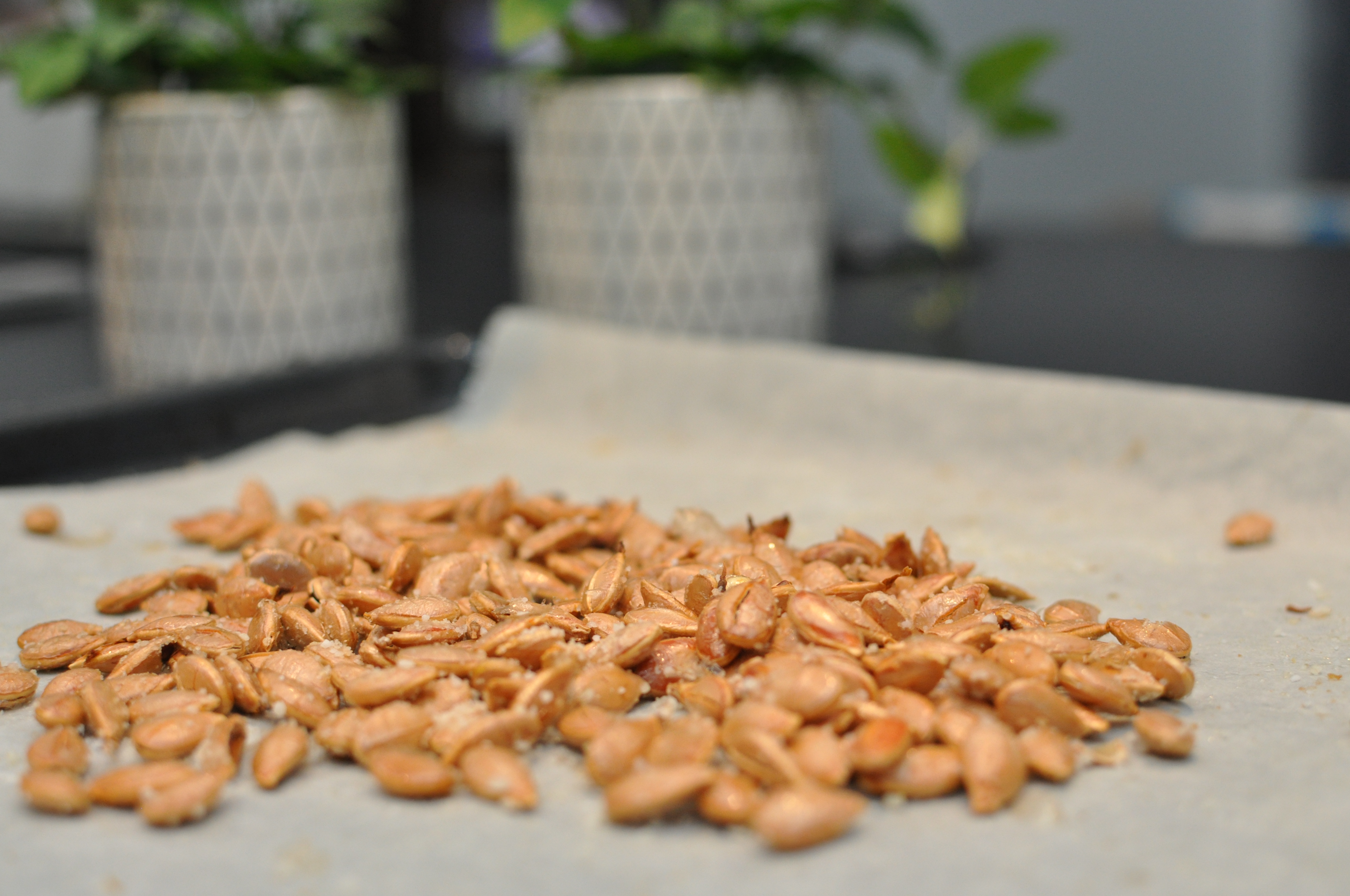 Jeg har aldrig lavet ristede friske græskarkerner før, men idag forsøgte jeg mig og synes egentligt de blev okay.