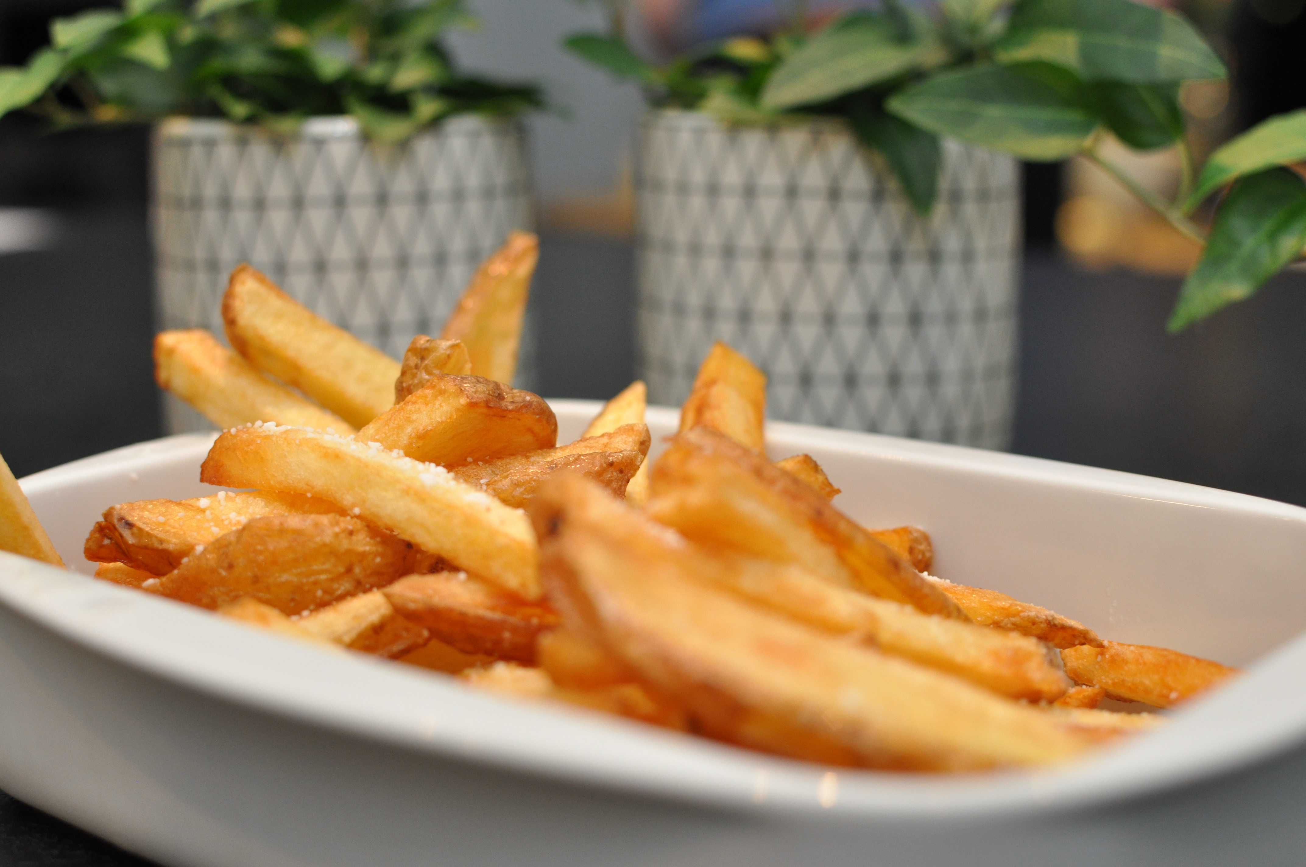 Inden i skal spise giver du dem en tur i frituren igen. Denne gang er det nok med ca. 2 min og husk at drysse dem med groft salt inden de kommer på bordet.