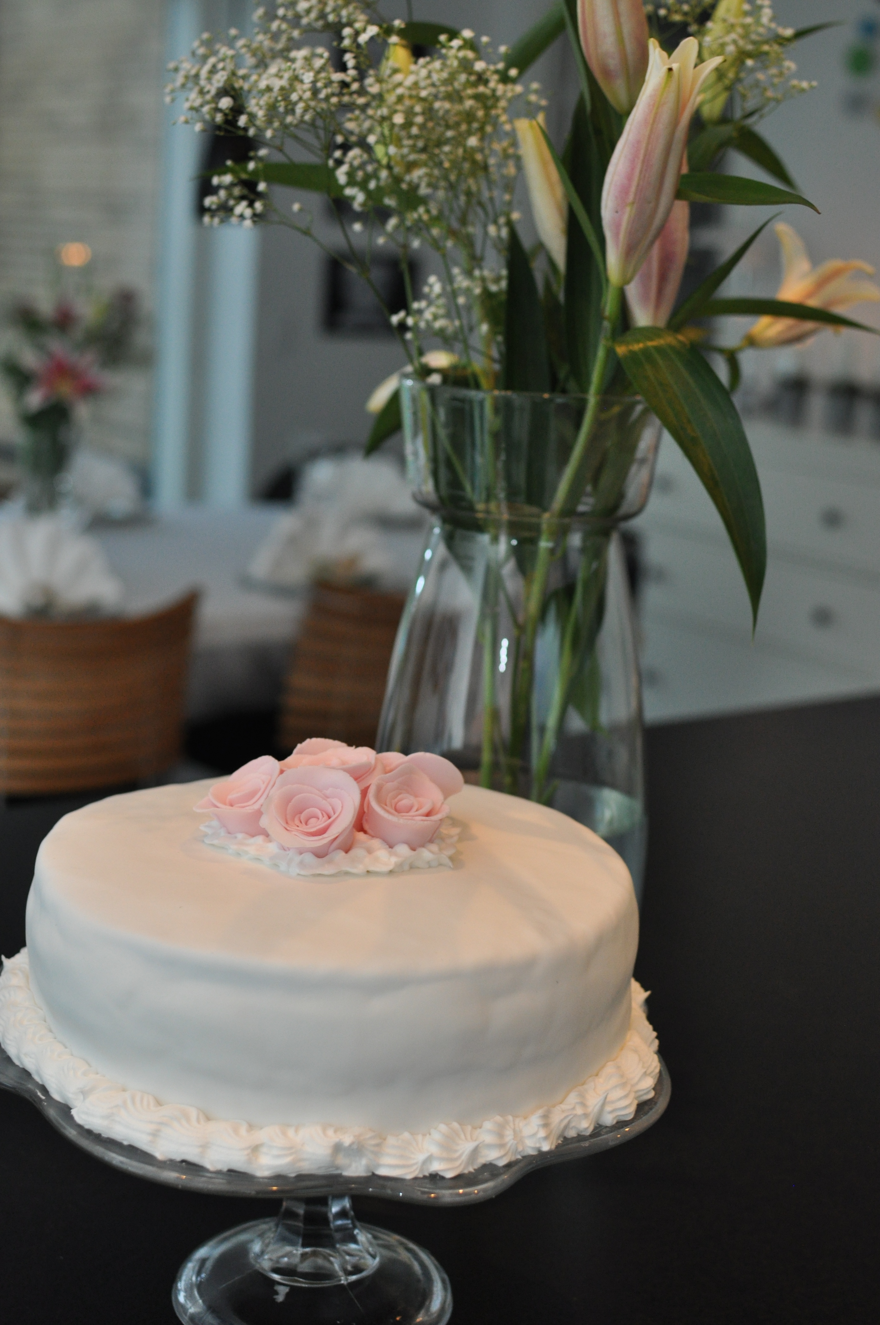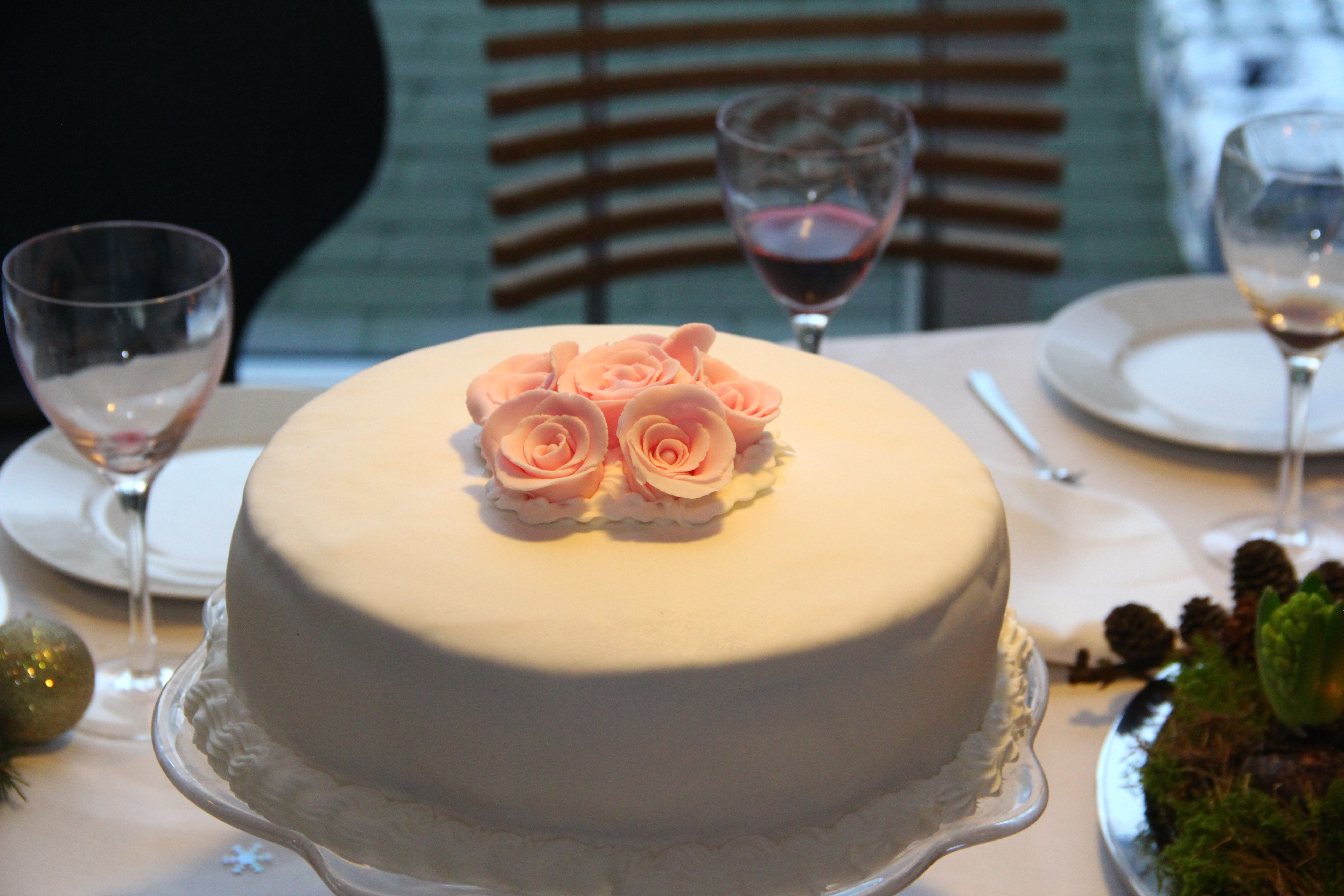 I lørdags den 6.12.2014 blev vi gift – et lille intimt bryllup på rådhuset i Holstebro med vores aller nærmeste. Det var en helt fantastisk dag, fest og aften og vi fik de mest vidunderlige oplevelser, minder, taler, gaver og ikke mindst billeder med fra dagen. Vi fik lækker tapas fra den lokale slagter til frokost og om eftermiddagen havde jeg selv lavet bryllupskagen. Jeg har kun en gang før forsøgt mig med en kage overtrukket med fondant og dengang var det ingen succes, da jeg ikke havde gjort forarbejdet godt nok og læst om hvordan sådan noget sukkerstas skal behandles, men denne gang var jeg forberedt, havde prøvelavet kagen og testet den for familie og kollegaer, så kagen på bryllupsdagen var helt perfekt!