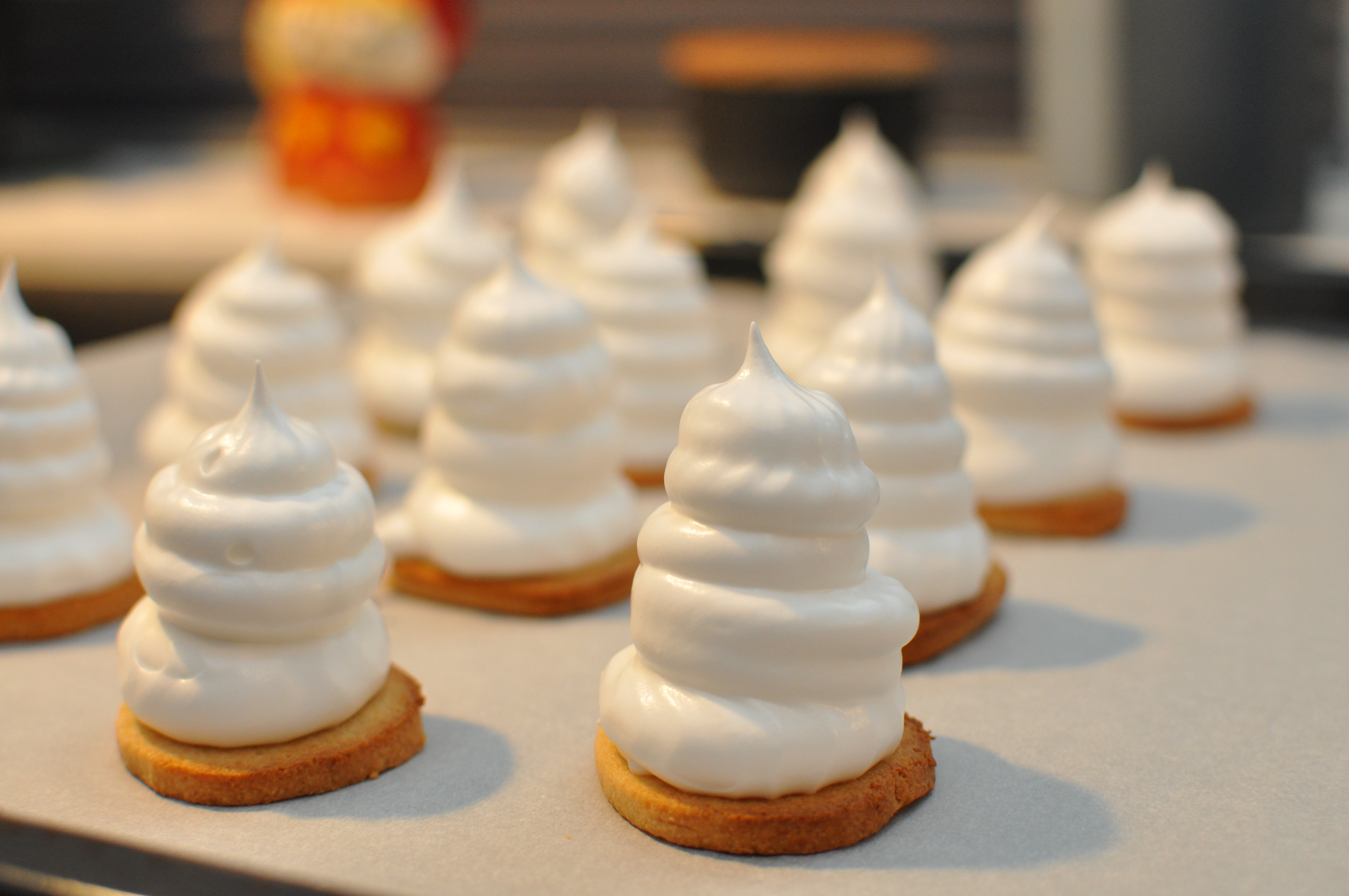 - Guf: 300 g sukker og 1 dl vand koges op og koger i 2 minutter. 150 g past. æggehvider piskes let og sukkerlagen tilsættes langsomt. Guffet piskes stift med en håndmikser eller i en køkkenmaskine ved middel hastighed i ca. 15 minutter. Det er IKKE færdigt før.