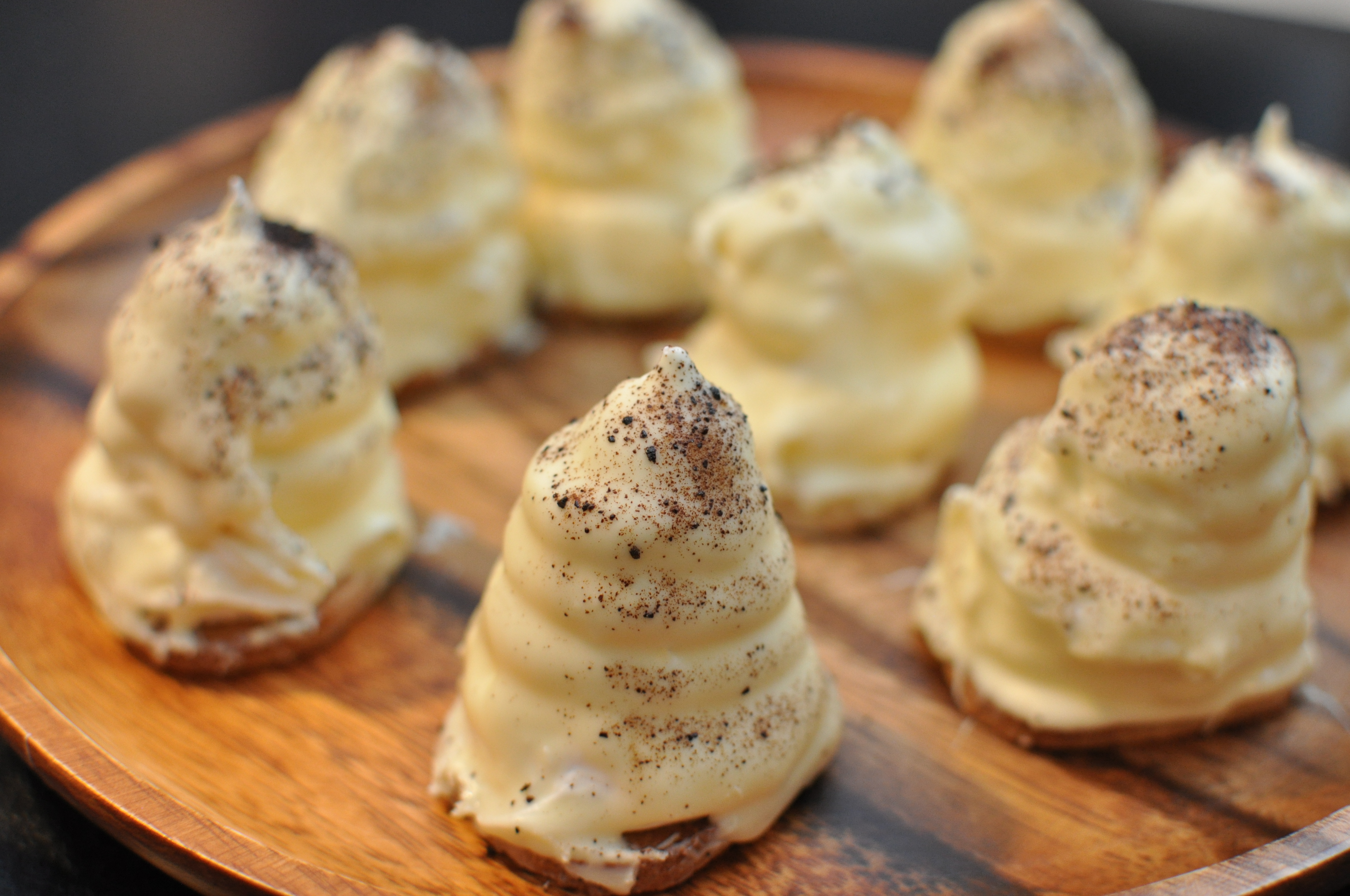 Igår skulle vi ud og spise hos vores gode venner. En dejlig aften med masser af hygge og lækker mad. Jeg havde en lille specielt lavet værtindegave med, da min veninde fortjente lidt ekstra godt efter at have passet Anton til vores bryllup i lørdags, hvor hun også havde sørget for oprydning og borddækning til morgenmaden. Jeg har aldrig prøvet at lave flødeboller før, men tænkte de her lækkerbiskner måtte falde i god jord.