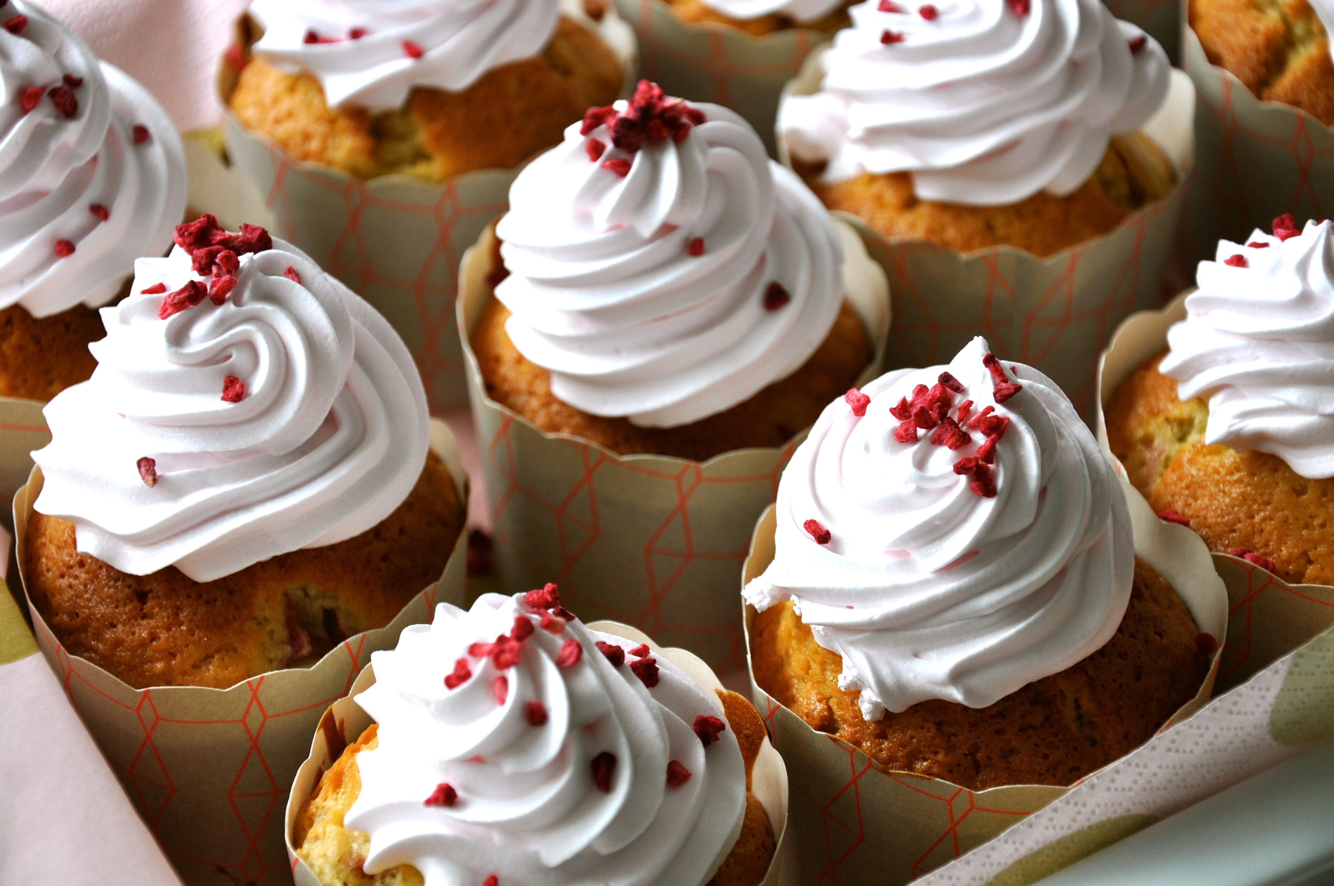 I lørdags havde en af mine bedste veninder polterabend – en rigtig tøsedag med masser af gode historier og hygge. Vi havde arrangeret at alle gæster skulle have en lille gave med, som hun skulle gætte hvem var fra og historien bag gaven. Det havde vi meget sjov ud af og hun var overraskende god til at regne historierne ud. Mens vi sad og hyggede med gaverne serverede jeg de her skønne cupcakes med rabarber fra haven og en rabarbermarengs på toppen. De holdt sig gode i flere dage.