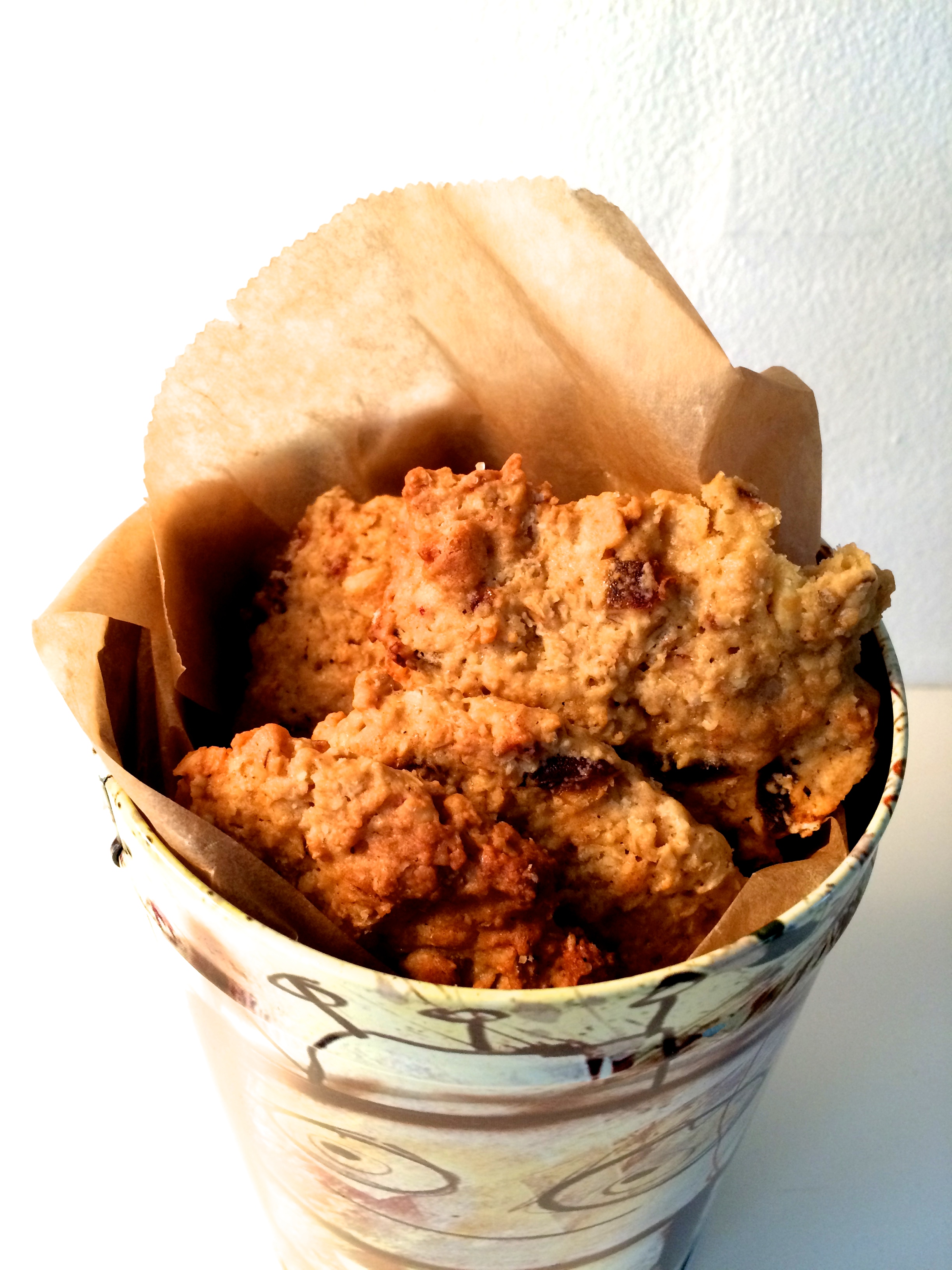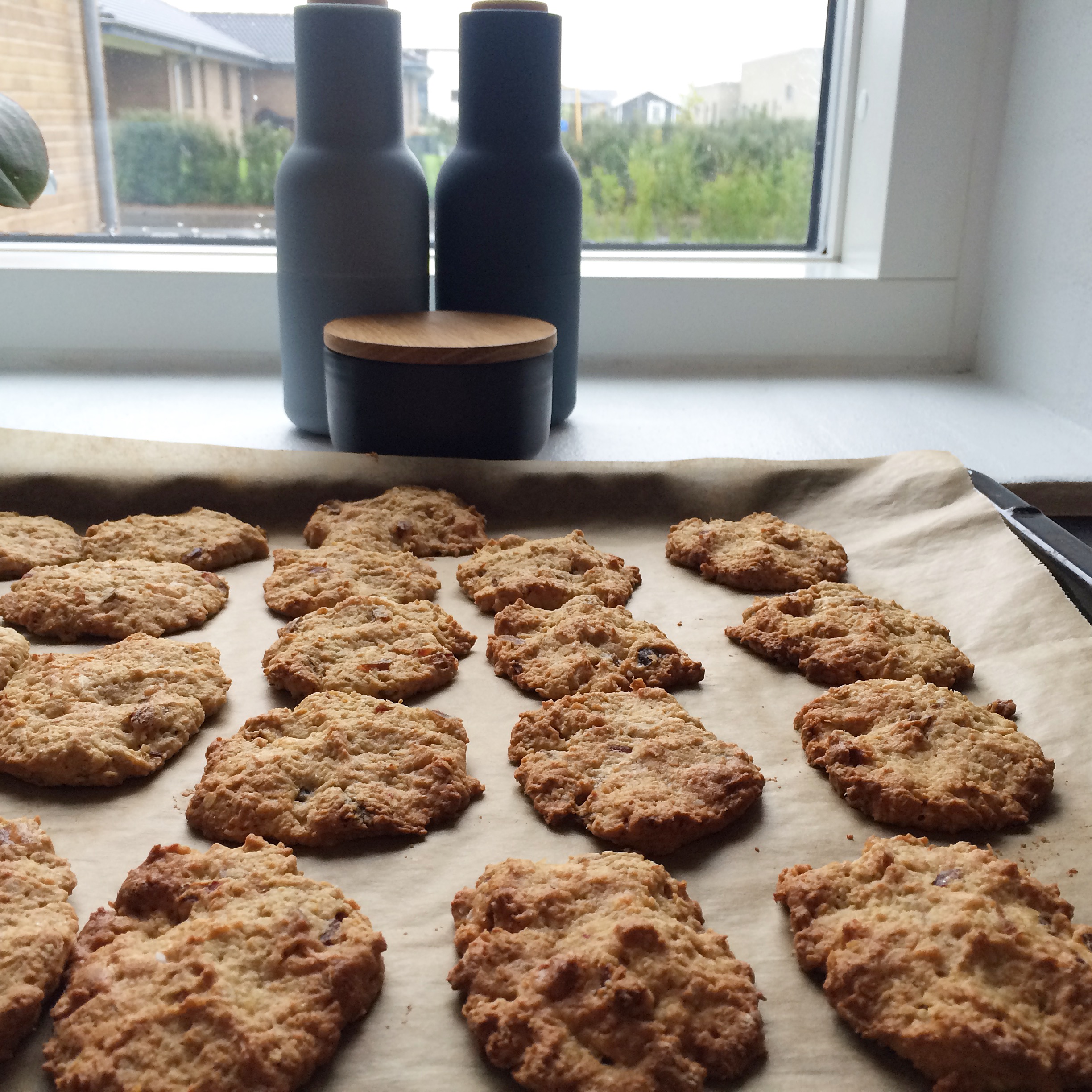 Jeg faldt den anden dag over denne lækre opskrift hos Valdemarsro og måtte selv prøve den af – lavede ganske lidt om og ellers er det den originale opskrift. Vi fik en rigtig familiehygge-bage-dag ud af det og Anton på 2 år var med til at røre det hele sammen. Småkagerne var super lækre med havregrynssmagen der tydeligt trådte igennem, dadlernes og chokoladens sødme og et let strejf af salt. Lige noget for min familie!