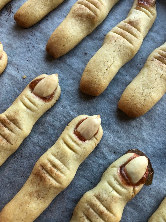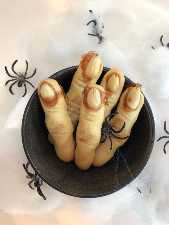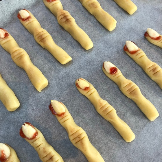 Zombiefingrerne er bagt af en almindelig småkagedej og er formet som ulækre beskidte fingre.
