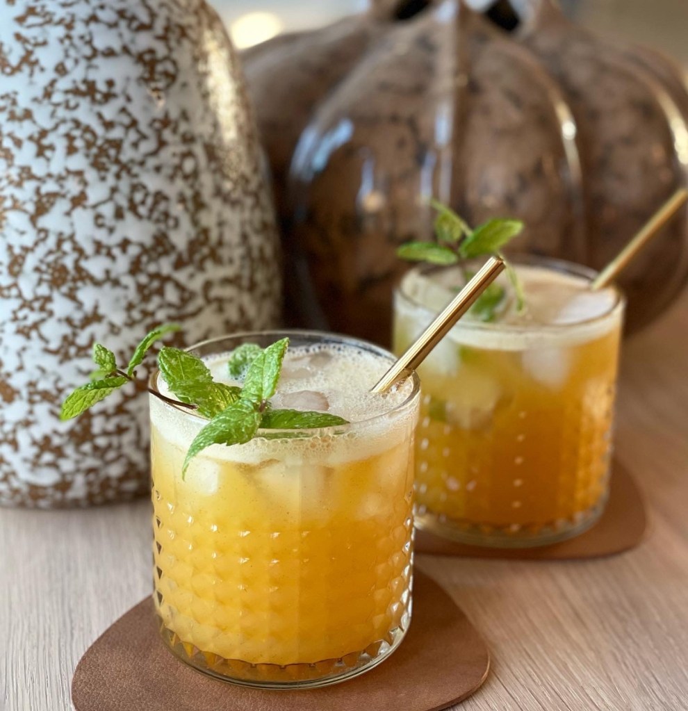 Alle ingredienser til cocktailen mixes og svales med is. Serveres afkølet med isterninger og mynte som pynt.